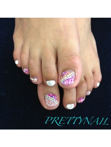 ジェルネイル フットネイル ピンクネイル ホログラムネイル ビジューネイル Privatesalon Jupiter所属 Jupiter の ネイルデザイン ミニモ