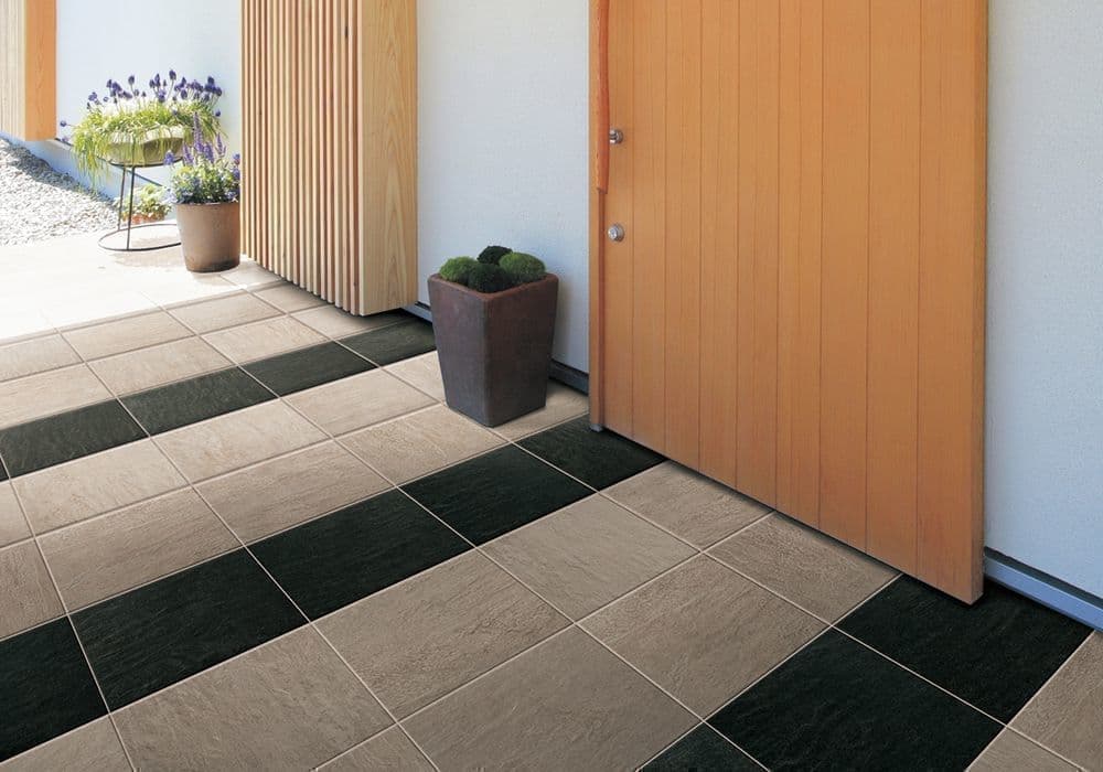 リズミカルな北欧風タイル 名古屋モザイク コラベル 久留米市 エクステリア 外構 E Garden